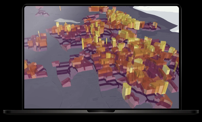 Geometria precisa de edificações e áreas construídas. Essencial para visibilidade, cobertura e planejamento de operações.
